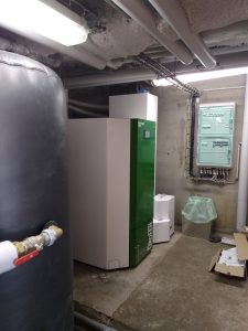 En 2020, une chaudière aux granulés de bois a été installée pour chauffer 2 logements sociaux, en remplacement de 2 petites chaudières au gaz propane.